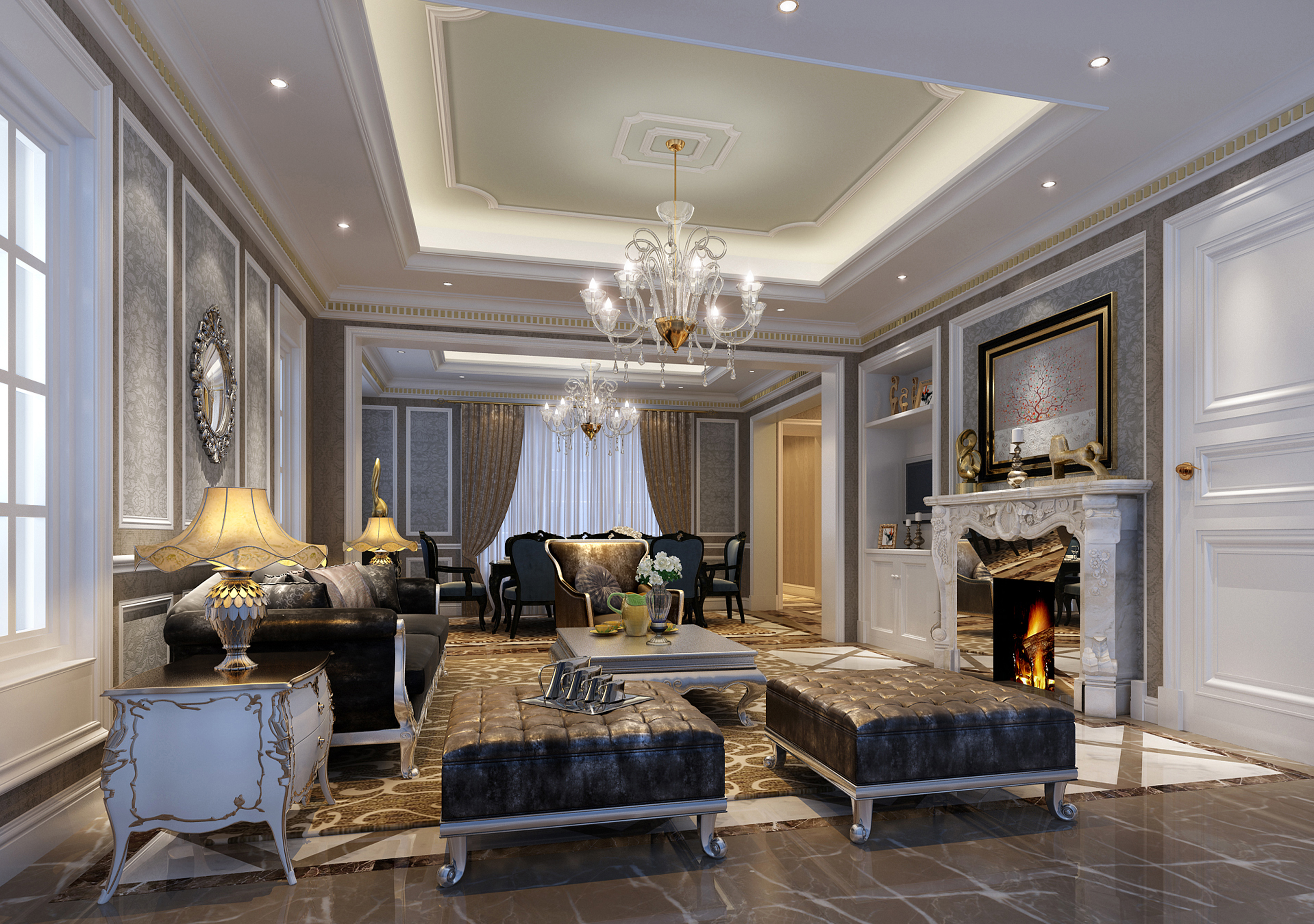 仿天然石材,使用規則或不規則的造型,點綴于埡口邊框上,營造一種回歸自然之感。另外,美式田園風格經常使用原木色家具,埡口用同樣材質裝飾,顯得更加清新。